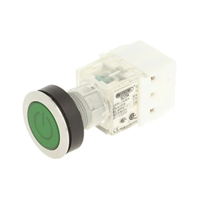 Schlegel 23.000.781 Push Button Stainless Steel, Green Cap, Label Symbol On/Off, Contact Sensor 1 Opener/1 N/O Contact, Screw Connection