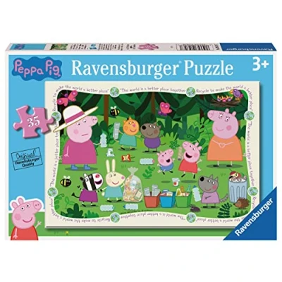 Join Peppa and friends as they embark on a Sustainability adventure in this 35 piece jigsaw puzzle! Perfect Peppa Pig Toys Bestselling puzzle brand worldwide - With over 1 billion puzzles sold, our children’s jigsaw puzzles make ideal gifts for boys and great gifts for girls. This product is made of FSC-certified and other controlled material. By choosing this product, you are supporting responsible management of the world’s forests. Our 35 piece kids puzzle are crafted with premium quality materials and measure 26 x 18cm when complete. Great puzzles for Children 3 years old and up. Fully complies with all necessary UK and EU testing standards Perfect toys for your child – Puzzles for kids of every age help support a child’s development as they play, building skills such as concentration and creativity. Positively Puzzling - From fun family times together to long term health benefits and day-to-day mindful moments. They make a great birthday present or Christmas gift!, Manufacturer: Ravensburger