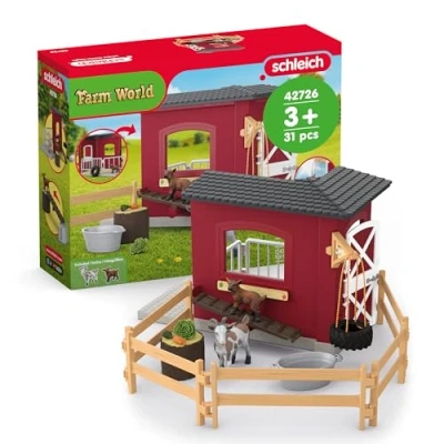 31-PIECE FARM PLAYSET WITH GOAT AND BABY – Includes an adult goat, baby goat, ramp, fence, tire swing, stable, and feeding accessories—perfect for interactive, hands-on play and endless barnyard adventures SPARK LEARNING THROUGH FARMYARD CARE AND PLAY – Inspire empathy and early learning with this hands-on farm playset, where kids care for a goat and her baby, explore routines, and build skills through imaginative barnyard fun. INTERACTIVE FARM FUN FOR CURIOUS KIDS – With a working ramp, tire swing, fence pieces, and feeding accessories, this goat stable playset invites little hands to explore, imagine, and care for animals in their own barnyard world GET READY FOR FUN IN FARM WORLD - What did the cow say to the pig? You're hogging all the grass! In this world of farm animals and barnyard buddies, sheep can be friends with ducks while horses race across the ranch. IMAGINATION WITHOUT LIMITS - Schleich toys come in all shapes and sizes to bring stories to life. We value sustainability which is why we created worlds of durable toys that can be treasured for generations to come, Manufacturer: schleich