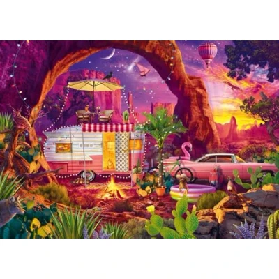 Schmidt six-star premium quality 1,000 piece jigsaw puzzle. Featuring artwork by Jeff Haynie. Once completed, this puzzle shows a sunset image of desert camping. This puzzle board features snug fitting, varied, extra thick and smooth-edged pieces. A perfect gift for any puzzler aged 14 and up. The completed puzzle measures approximately 69.3 cm x 49.3 cm., Manufacturer: Schmidt