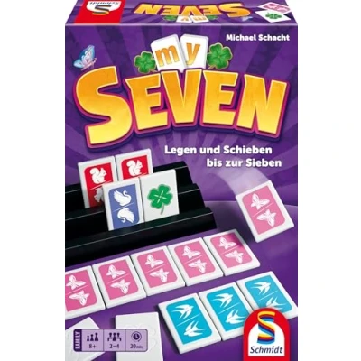 My Seven - animal clever for points and perfect combinations. Beautiful tile game with simple rules of the game, high fun. A tile game where clever combinations and strategic swapping are the decision. Take animal stones, form families, use jokers correctly and finish the game at the crucial moment: colourful, accessible and full of surprising twists, My Seven invites you to combine cleverly. Every move counts and probably it is not your own stones that bring the decisive advantage. Because if you look closely, you can cleverly access the displays of the players and thus lay the best combinations. My Seven is a tactical family game for two to four people aged 8 and over Playing time: approx. 20 minutes, Manufacturer: Schmidt Spiele GmbH