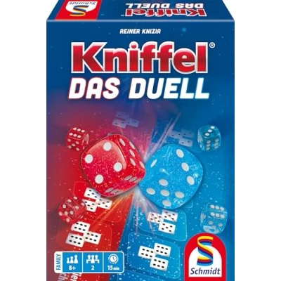 Here, 2 people compete against each other in a kind of kniffel tug of war: as usual, combinations are diced here. Instead of entering them on a block, you push golden wooden discs towards you. R Tug of war mechanism brings a breath of fresh air into the usual trickling. Fun for 2 players Recommended for ages 8 and up Playing time: approx. 15 minutes, Manufacturer: Schmidt Spiele GmbH