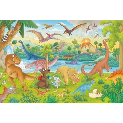 Schmidt Spiele 56411 Mauseschlau und Bärenstrak, Journey to Prehistoric Times, 60 Pieces, Children's Puzzle with Knowledge Book, Colourful