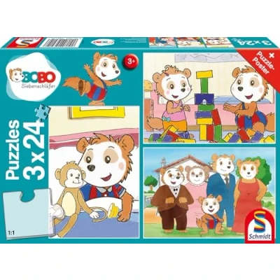 Schmidt Spiele 56414 Bobo Dormouse Friends and Family Children's Puzzle 3 x 24 Pieces Multi Coloured