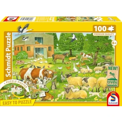 Schmidt Spiele 56528 Animal Children on the Farm, 100 Pieces Children's Puzzle Made of Grass Cardboard