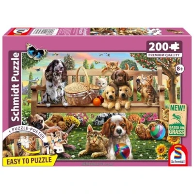 Schmidt Spiele 56534 Garden Picnic for Dogs and Cats, 200 Pieces, Children's Puzzle Made of Grass Cardboard, Multi Coloured