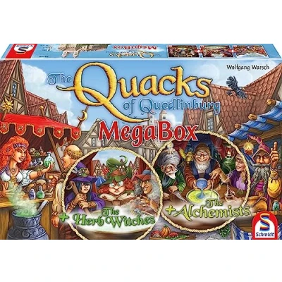 Welcome to the town of Quedlinburg. Includes the Quacks of Quedlinburg base game, and the Herb Witches and Alchemists expansions. Brew the best potions to claim your fame! Playing time 45 minutes. Suitable for 2-5 players aged ten and up., Manufacturer: Schmidt