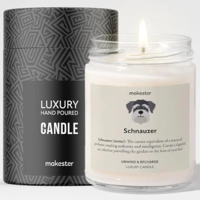 Schnauzer Candle Over 100+ Breeds 220g Soy Wax Madagascan Vanilla & Jasmine Gift for Christmas or Birthday Dog Lover Candles by Makester