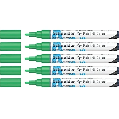 Schneider 120104 Paint It Acrylic Pens with 2 mm Bullet Tip, High Coverage Paints for Wood, Canvas, Stone and Much More, Pack of 5, Green