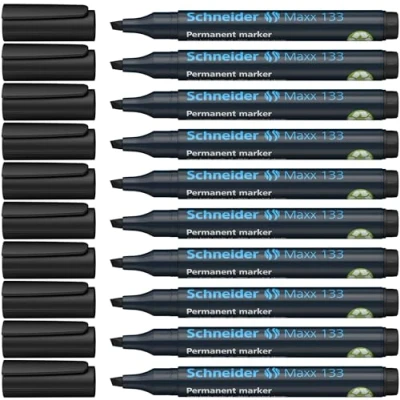 Schneider 133 Permanent Marker Pen 1+4 mm Black Cap Off Ink Refillable Pack of 10