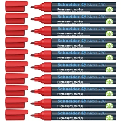 Schneider 230 Permanent Marker Pen 1 3 mm Refillable Aluminium Barrel Pack of 10 Red