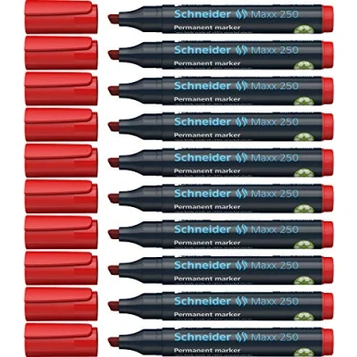 Schneider 250 Permanent Marker Refillable Chisel Tip 2 + 7 mm Pack Of 10 Red