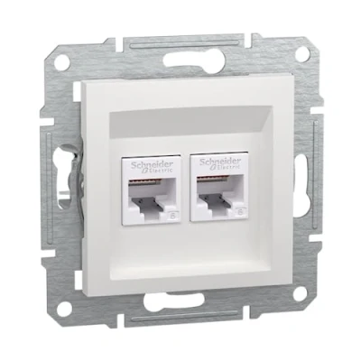 HIGH QUALITY DATA TRANSFER The Asfora RJ45 Cat6e flush mount provides reliable data transfer with Kat6e classification for fast and stable network connections EASY INSTALLATION Flush mount connector allows easy and clean integration of the RJ45 connector into your electrical installation Space-saving design: with the 2-way connector, you can connect two network cables in a single unit, which saves space and ensures a tidy installation IDC Connector The IDC connector allows for fast and reliable connection of network cables without the need for soldering or crimping AESTHETIC APPEARANCE The white design of the Asfora RJ45 connector blends seamlessly into your room design, providing a clean and modern appearance VDE certified: Meets the high safety standards according to VDE standards, Manufacturer: Schneider Electric