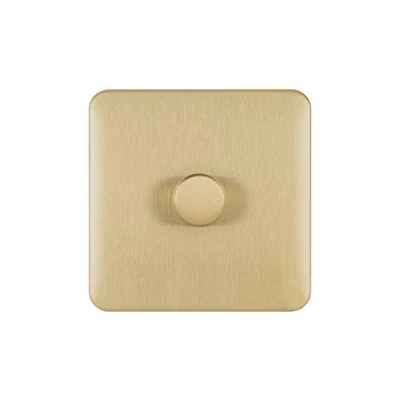 Schneider Electric Lisse Screwless Deco Single 1 Way Dimmer Light Switch, Mains, 250 W, GGBL6011CSBS, Satin Brass