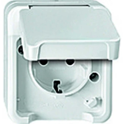 Schneider Electric MEG2300 8019 4074943 Merten 1 Gang Wet Room Switch Range, Complete Earthing Contact Socket with hinged lid, Aquastar P, Polar White, mit Berührungsschutz
