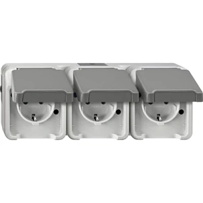 Schneider Electric MEG2391 8029 4074954 3 Way Wet Room Switch Range Complete Protective Contact Socket with Hinged Ceiling, Gray