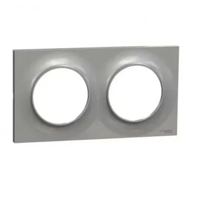 General description Odace Styl plate in aluminum color by Schneider is designed exclusively for Odace wiring devices. Its hard yet rounded lines add a modern and classic touch to your interior. Technical specifications Material: Aluminum Number of stations: 2 Center distance: 71mm