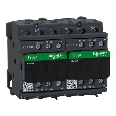 Schneider Electric TeSys Deca reversing contactor,3P(3NO),AC 3,=440V 18A,48V AC coil,LC2D18E7