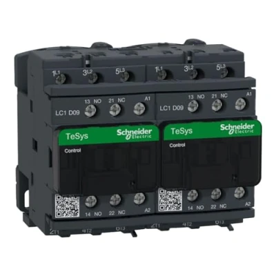 Schneider Electric TeSys Deca reversing contactor,3P(3NO),AC 3,=440V 9A,120V AC coil,LC2D09G7