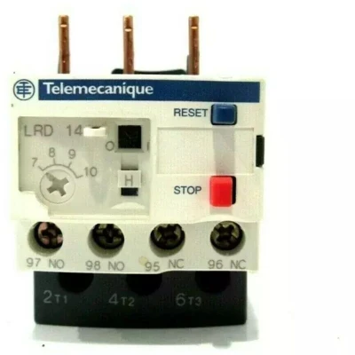 General description TeSys LRD14 is a thermal motor protection relay designed to safeguard both single and three-phase circuits. It features a thermal protection setting range of 7 to 10A, ensuring reliable operation in various applications. Technical specifications Thermal protection setting: 7 to 10A Class: 10A Usage Blue push-button: for mode reset Red push-button: for STOP