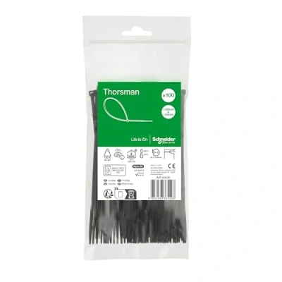 Schneider Electric Thorsman Cable Ties, Pack of 100, Made Polyamide, 150 x 3.6 mm, Colour: Black, Various Sizes, Smooth Rounded Edges, Super Durable, Self Locking Ties for Management