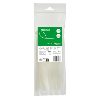 Schneider Electric Thorsman Cable Ties, Pack of 100, Made Polyamide, 200 x 3.6 mm, Clear Colour, Various Sizes, Smooth Rounded Edges, Super Durable, Self Locking Ties for Management