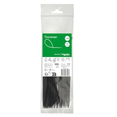 Schneider Electric Thorsman Cable Ties Pack of 100 Polyamide 200 x 2.5 mm, Colour Black, Various Sizes, Smooth Rounded Edges, Super Durable, Self Locking for Management