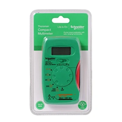 POCKET PERFORMANCE: The Schneider Electric Thorsman IMT23212 compact digital multimeter provides excellent readability and is ideal for basic electrical measurements; its handy design allows precise measurements in any situation Versatile measuring functions: this multimeter measures voltage, current, resistance and continuity; With DC voltage ranges of 2/20/200/300V and AC voltage ranges of 2/20/200/300V, it is suitable for a wide range of applications Intelligent functions: the integrated battery status indicator keeps you up to date with the power supply; the clear LCD display allows easy reading of the readings; the built-in test leads ensure convenient handling ERGONOMIC DESIGN The ergonomic design allows for hands free operation, which is especially convenient when you need both hands for measurements or other tasks SAFETY AND MOBILITY: As a Category III device with 300V, this multimeter offers high security; secured with a 250mA fuse it ensures reliable readings; Powered by a 12V battery (type: 23A or equivalent), it is lightweight and portable for use anywhere you need it, Weight: 0.110231131 Pounds, Manufacturer: Schneider Electric