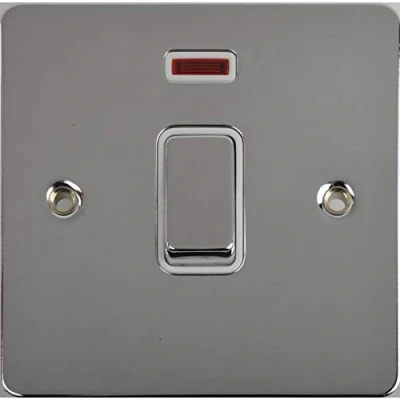 Schneider Electric Ultimate Flat Plate Single Light Switch, with Neon Indicator, Double Pole, GU2211WPC, Polished Chrome White Insert
