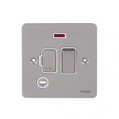 Schneider Electric Ultimate Flat Plate Switched Fused Connection Unit, with Neon Indicator and Flex Outlet, GU5214WPN, Pearl Nickel White Insert
