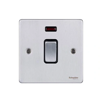 Schneider Electric Ultimate Low Profile Single Light Switch, Double Pole, 20AX, with Neon Indicator, GU2511BBC, Brushed Chrome Black Insert