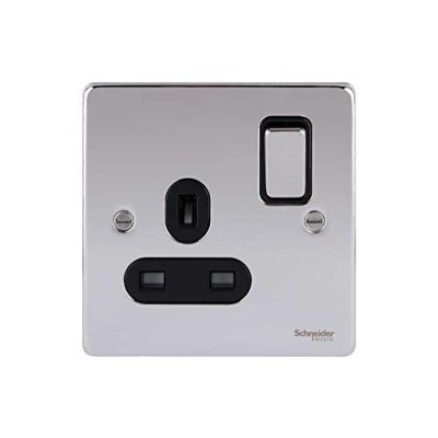 Schneider Electric Ultimate Low Profile Single Switched Power Socket, 13A, GU3510BPC, Polished Chrome with Black Insert