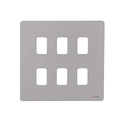 Schneider Electric Ultimate Screwless Flat Plate 6 Gang Grid Faceplate, with Mounting Frame, GUGS06GPN, Pearl Nickel