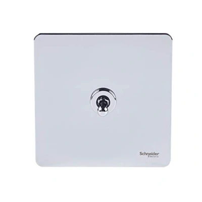 Schneider Electric Ultimate Screwless Flat Plate Single Toggle 2 Way Light Switch, 16AX, GU1412TPC, Polished Chrome