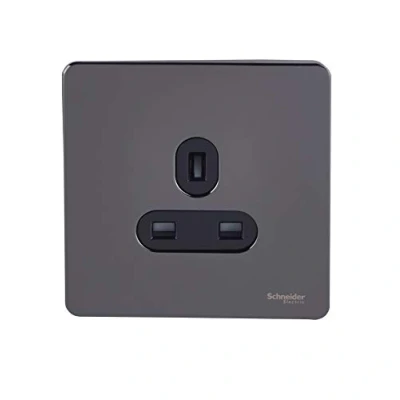 Schneider Electric Ultimate Screwless Flat Plate Single Unswitched Power Socket, 13A, GU3450BBN, Black Nickel with Insert