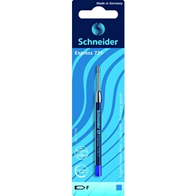 SCHNEIDER Express 735 Ballpoint Pen Refill, Indelible, F, Blue, 1 Blister Card