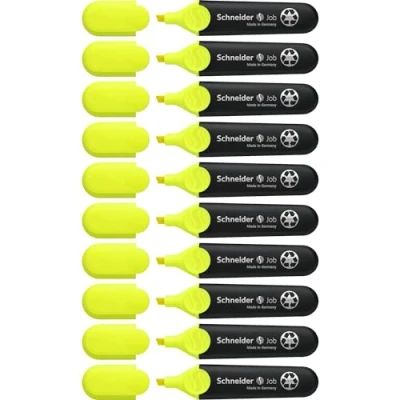 Schneider Highlighter Job 150, Refillable, Non Fading, with Clip, Yellow, Pack of 10