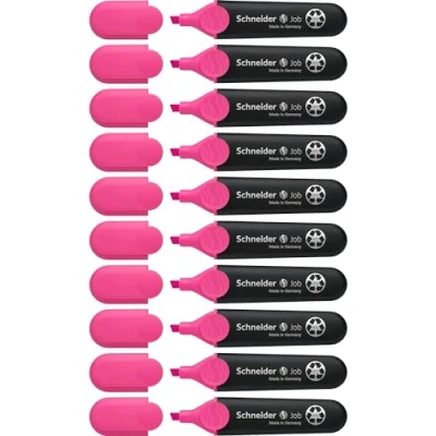 Schneider Job 150 Highlighter Refillable Non Fading with Clip Pack of 10 Pink