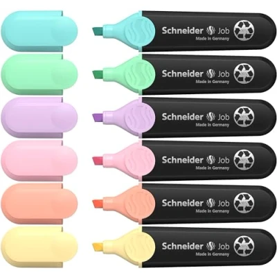 Schneider Job 150 Pastel Highlighters (Turquoise, Mint, Lilac, Rose, Peach, Vanilla) Pack of 6