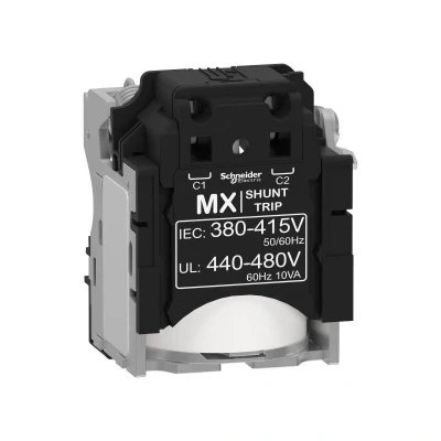 General description Schneider's ComPacT NSX MX voltmetric release is designed for use in accessory circuit breakers, specifically for the NSX100-630 series. This coil operates at two voltage ranges, making it versatile for various applications. Technical specifications Voltage range: 380-415Vac at 50Hz Voltage range: 440-480Vac at 60Hz