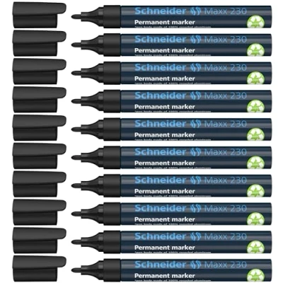 Schneider Marker Pen 230 Black 1 3 mm Permanent Refillable with Aluminium Barrel Pack of 10