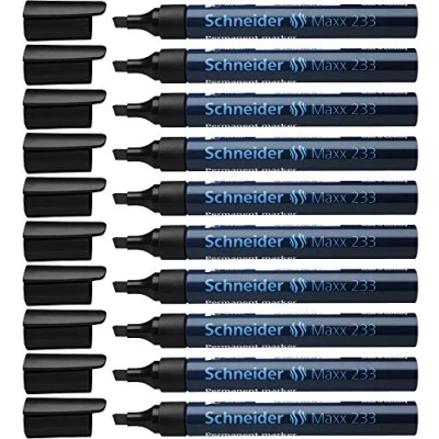 Schneider Marker Pen 233 Black 1+5 mm Permanent Refillable with Aluminium Barrel Pack of 10