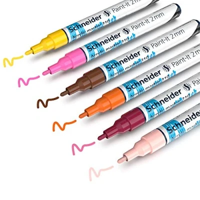 Schneider Paint It 310 Acrylic Marker Set 3 (2 mm Round tip, high Coverage, Brilliant Colour, for Almost All Surfaces) 6 Pieces
