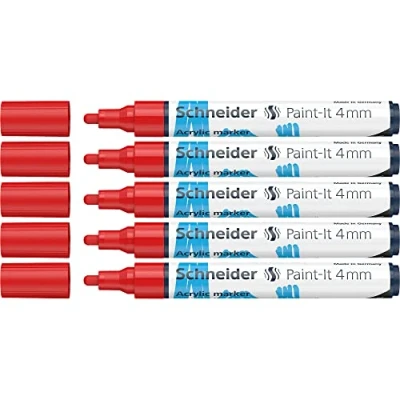 Schneider Paint It Acrylic Pens with 4mm Bullet Tip, High Opaque Paints for Wood, Canvas, Stone and More Pack of 5 Red