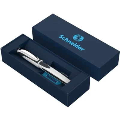 The Ray cartridge roller conquers schools, offices and universities with its clear design and sporty shape. An ideal gift for frequent writers in the gift box This roller is a good alternative to the fountain pen. It is suitable for adults, children and beginners due to its ergonomic grip Thanks to the patented regulator, the pen offers a clean typeface without spilling. The ink is erasable and free from harmful substances and preservatives It sits comfortably in the hand and guarantees a soft writing experience for right-handed and left-handed users. Line width M (approx. 0.6 mm) The gift idea with everything you need: Schneider Ray rollerball pen including a pack of standard cartridges in royal blue, cardboard case