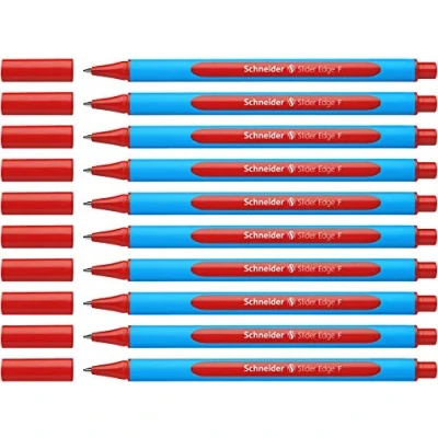 Schneider Slider Edge 152002 Ballpoint Pen with Cap Model F Pack of 10 / Cyan and Red Barrel Ink