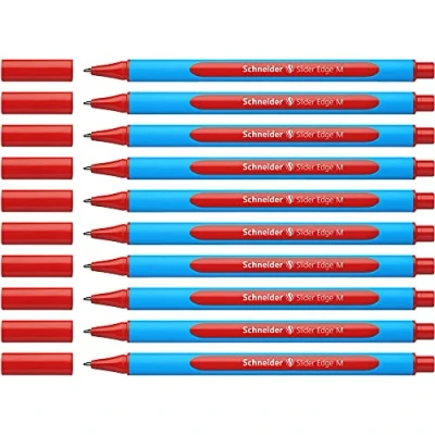 Schneider Slider Edge Ballpoint Pens with Cap Model M Pack of 10 / Cyan and Red Barrel Ink