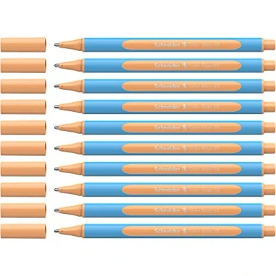 The clever Slider Edge XB – now also available in trendy pastel. Box of 10. Colour: peach Ballpoint pen with Viscoglide technology for exceptionally easy, smooth writing in extra-wide line width (XB). The Slider Edge is made CO₂-neutral The generously rubberised triangular barrel allows for a relaxed and secure writing position without hand fatigue. The cap can be replaced The writing dries quickly - even on smooth paper - and remains smudge-proof even when marking afterwards with highlighters Also suitable for drawing and painting, as the special paste does not dissolve even on absorbent paper. Available in a wide range of colours