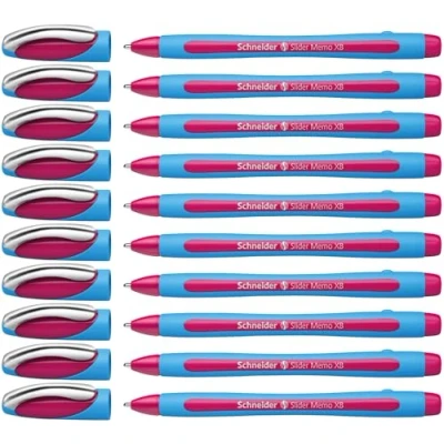 Schneider Slider Memo XB Ballpoint Pen Pink Ink Blue Barrel Pack of 10