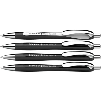 Discover the high-quality Slider Rave in limited special editions. Now also available in stylish black and white-black. Outstanding writing enjoyment redefined Comfortable slider with Viscoglide technology for easy and smooth writing without dropouts. Optimal writing experience even during long exams, exams and essays The writing dries quickly, even on smooth paper and remains smudge-proof even when highlighted afterwards. Permanent in accordance with ISO 12757-2 The ergonomically shaped, generously rubberised barrel of the ballpoint pen allows relaxed and safe writing without hand fatigue. Ideal partner for office, university or school Pen with replaceable large capacity refill Slider 755 XB (extra wide) and wear-resistant stainless steel tip. Refillable with different lead formats thanks to the clever plug and play system